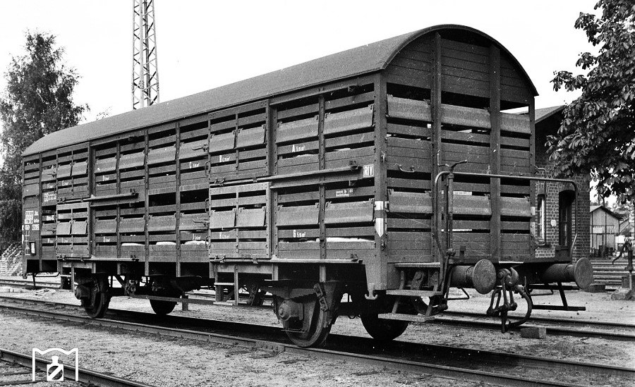 Nel 1960 le DB commissionarono la costruzione di 650 carri Vlmmhs 63 per il trasporto di bestiame. Questi vennero costruiti utilizzando parti di carri bestiame smantellati risalenti all’anteguerra. - Carro Vlmmhs 63 numero 332 280 nel 1962 -