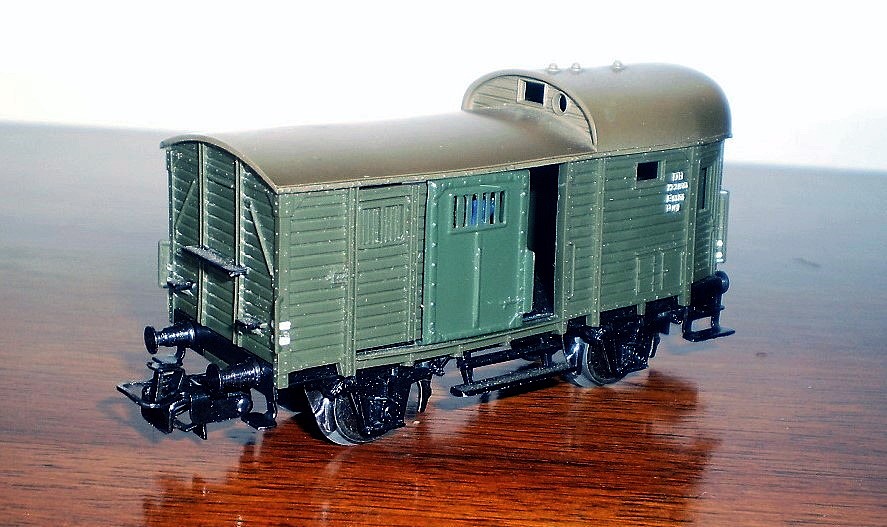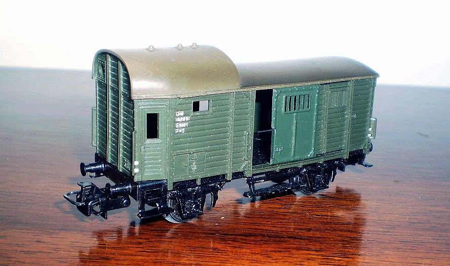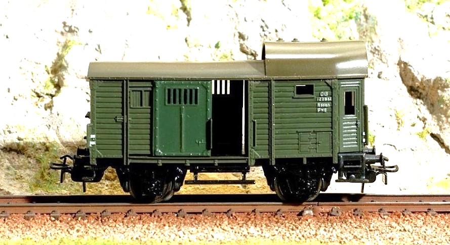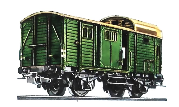 Carro di costruzione prussiana con classificazione originaria “Pg”. Venne creato nel 1889 da una modifica di un comune carro merci a cui venne aggiunta una cabina rialzata e dotato di servizi per il personale addetto al treno. Nella sua lunga storia venne consegnato con 4 diversi contrassegni di appartenenza, K.P.E.V. / P.St.E.V / DR / DB con classificazione Pg / Pwg 14. Nel tempo ebbe funzioni diverse, tecniche nell’Epoca I e logistiche nell’Epoca II e III. In Epoca I veniva collocato sempre appresso alla locomotiva in quanto era dotato di un apparato per la trasmissione del fischio della locomotiva stessa, in Epoca II e III divenne bagagliaio per treni merci e secondo le norme allora vigenti tutti i treni merci trainati da locomotive a vapore, in minor misura di locomotive elettriche, dovevano essere dotati di una vettura per il personale. La parte rialzata era adibita ad ufficio con scrivania e zona riposo e dai 2 piccoli oblò il capotreno poteva controllare tutto il convoglio e sbrigare le formalità burocratiche. In cassetti ripostiglio erano sistemati pezzi di ricambio e materiali per il segnalamento come torce, petardi, e bandiere. Nella parte più bassa che occupava oltre metà carro, destinata anche a bagagliaio, ma in realtà poco usato, venne adibito ad alloggio e porta attrezzi per quei lavoratori della ferrovia che dovevano percorrere un tratto in treno per recarsi al lavoro. La traballante stabilità di quei carri ormai di vecchia concezione per la sempre maggiore velocità dei convogli, rendevano problematici il confort e la compilazione dei documenti di viaggio del capotreno, per cui alla fine degli Anni ‘30 furono sostituiti da nuovi carri sempre a 2 assi però con migliori sospensioni, mantenendo la classificazione Pwg. Gli ultimi Pwg 14 vennero ritirati agli inizi degli Anni ‘80. - La storia più dettagliata del Pwg 14 continua sul sito: https://www.marklinfan.net/il_pwg,_bagagliaio_per_treni_merci.htm -