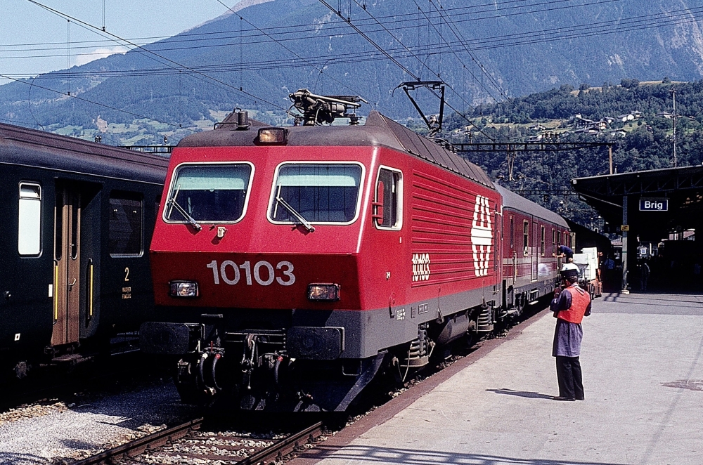 Torniamo alle SBB nel 1985 troviamo a Briga la 10103 alla testa di un convoglio eurofima con un bagagliaio uic x grigo/rosso fegato