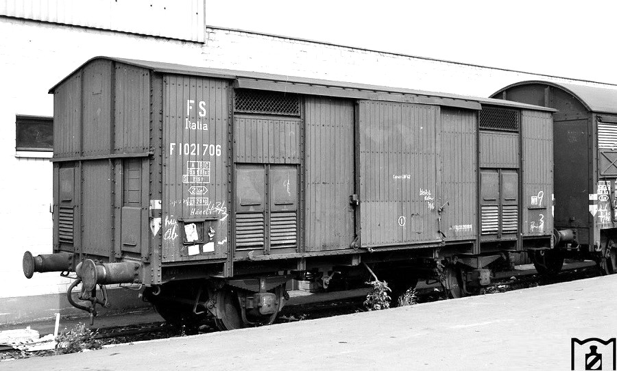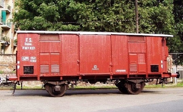 - Foto Reinhard Todt / da: eisenbahnstiftug.de - Il carro coperto tipo “F” delle Ferrovie dello Stato è stato uno dei carri merci più diffusi, sia in Italia che all’estero. I produttori di materiale rotabile produssero migliaia di carri di questo tipo con cassa in legno e telaio a struttura mista a due assi con o senza garitta per il frenatore. (Telaio a struttura mista: telaio in acciaio e pavimento in legno) La loro caratteristica sagoma con tetto spiovente a due falde contribuì a rendere l’immagine del tipici carri merci italiani e questi convogli costituirono per decenni l’ossatura del trasporto merci e derrate alimentari in Italia. Nel corso del tempo hanno seguito l’evoluzione tecnica del rotabili ferroviari: la struttura divenne interamente metallica e anche il passo fra gli assi venne aumentato. I carri rimasero in servizio fino agli Anni ‘90.