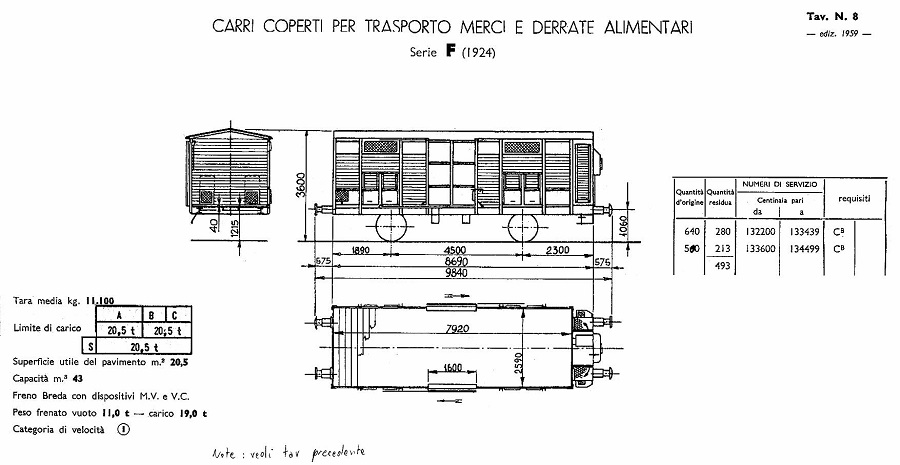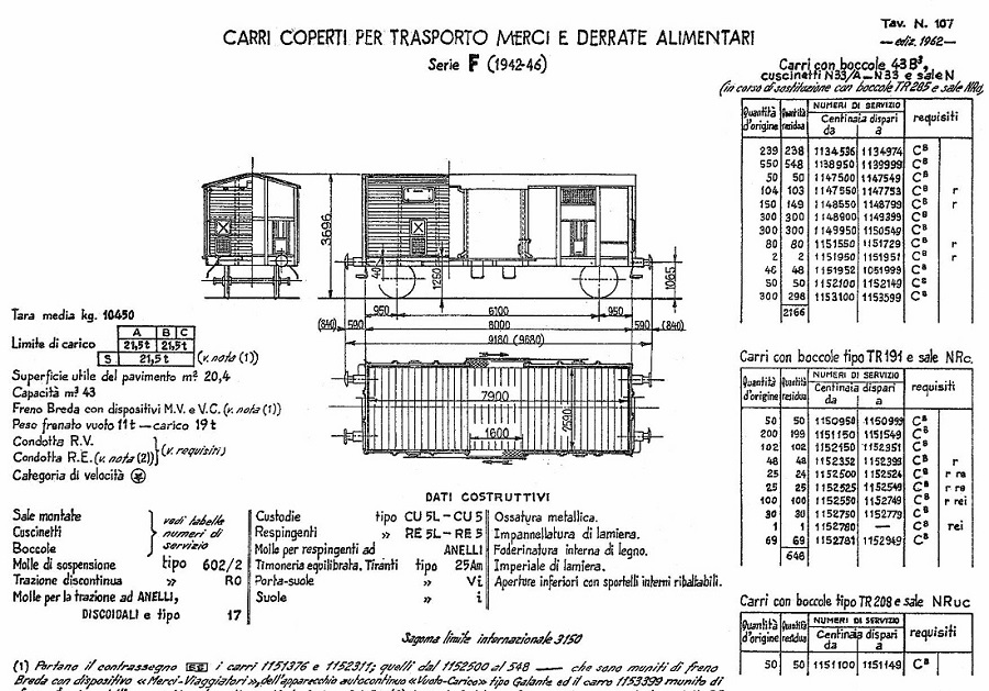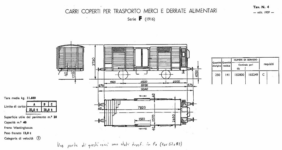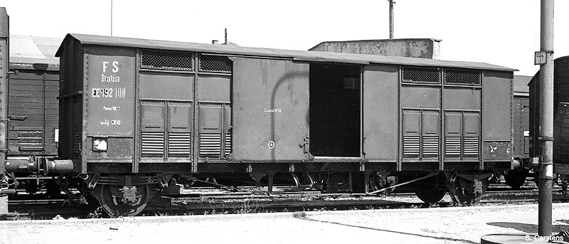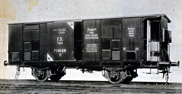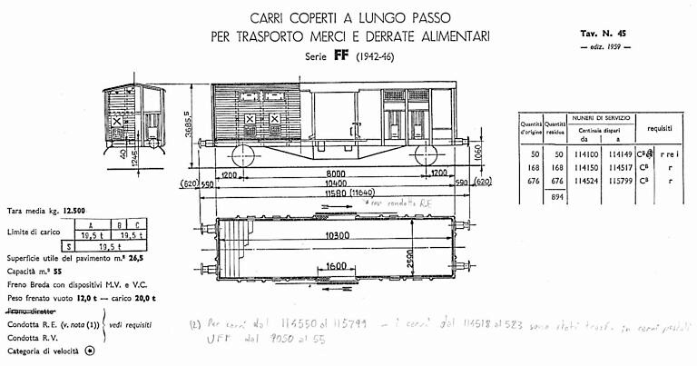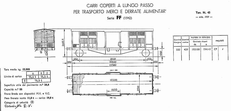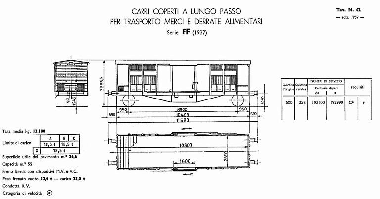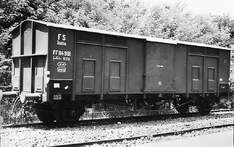 - Foto FS / Fototeca BFWG / da: clamfer.it - - Nota - I carri FF del 1937 e 1942 avevano il passo di 8.500 mm, la serie del 1942-46 aveva un passo di 8.000 mm. Tutti dotati di cassa metallica e rivestiti all’interno con foderine in legno, gli aeratori bassi erano 12 oppure 20, mentre le aperture superiori con griglia erano 8, la capacità era superiore a 50 m³.