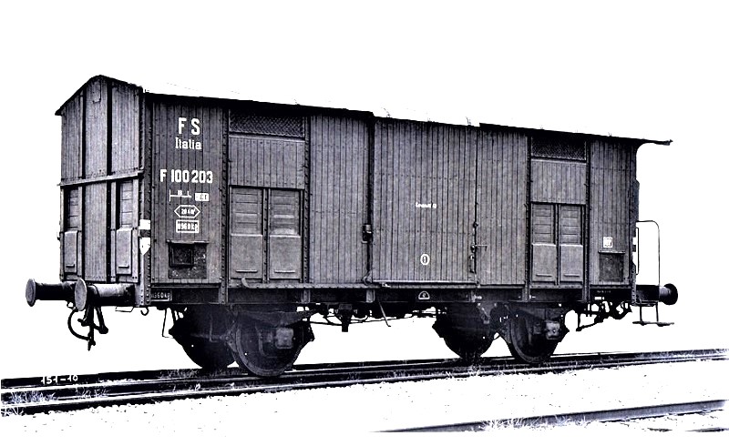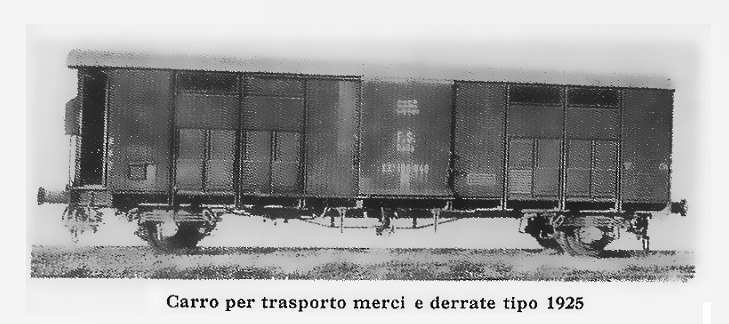 - Foto da: Il Cinquantenario delle Ferrovie dello Stato 1905-1955 / Duegi Editrice / CIFI / 2002 - Le Reti ferroviarie private nella seconda metà dell’Ottocento ne costruirono in grande quantità, ognuna secondo i propri criteri. Quelle Reti diedero origine alle Ferrovie dello Stato nel 1905 e i carri loro appartenenti vi confluirono. I primi carri erano rivestiti a doghe di legno orizzontali, dal 1925 vennero rivestiti a doghe verticali.