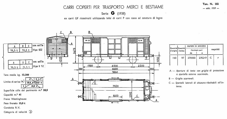 I carri G avevano griglie di aerazione più grandi ed erano adibiti al trasporto di merci e bestiame. - 1938 -