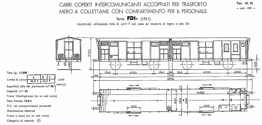 I carri FDIa del 1931 erano carri coperti intercomunicanti accoppiati con il tetto a due falde per trasporto merci e collettame con compartimento per il personale. - 1931 -