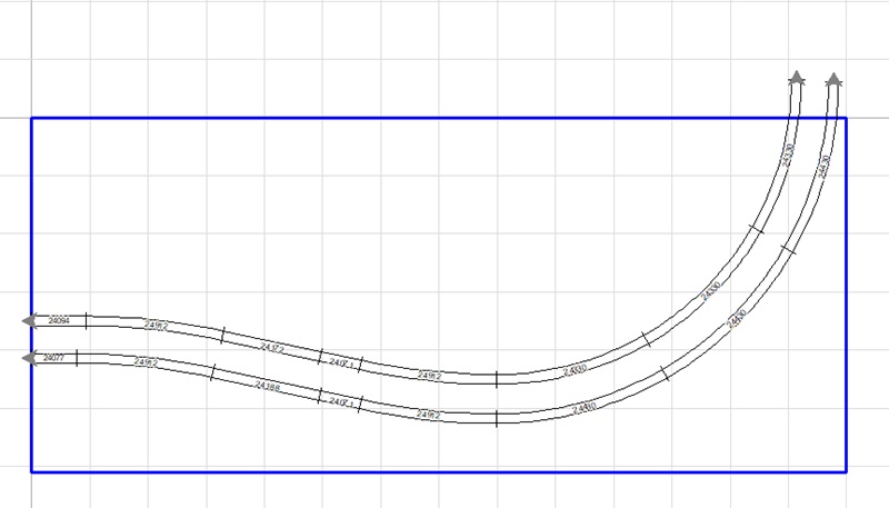 il layout ricalca un po' quello fatto da Luca sulla sua terna di moduli, una S fatta con 24912 che si avvicina al bordo anteriore, per permettere di guadagnare spazio sul retro e dare al contempo movimento al treno. ho però lasciato aperte molte soluzioni, limitandomi a fissare i binari solo fino alla prima sezione di curve 330/430