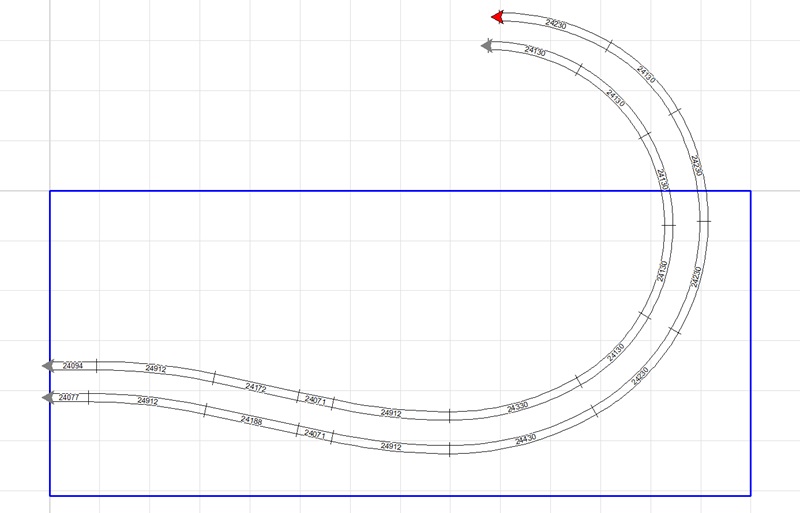 Posso usare la classica soluzione da fiera con curve complete raggio 3/4, posso mettere delle controcurve e far uscire il treno dritto per dritto, e posso (nell'idea originale di uso casalingo) mettere raggi più stretti possibile. nell'ultima soluzione ho un ingombro posteriore inferiore ai 400 mm (a patto di avere treni che perdonano il raggio 1)