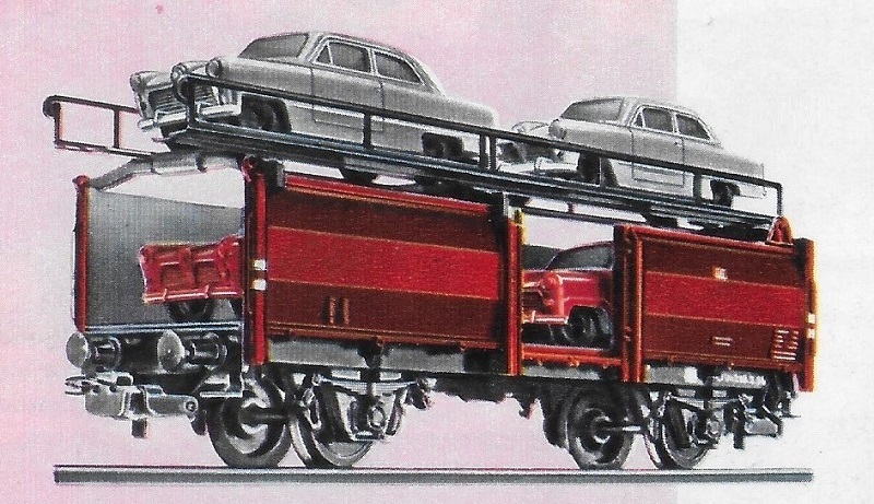 Erano lunghi 20 metri e potevano trasportare 10 autovetture, 5 nella parte inferiore e 5 nella parte superiore. (Opel Olympia Mk3 prodotta dal 1950 al 1953)