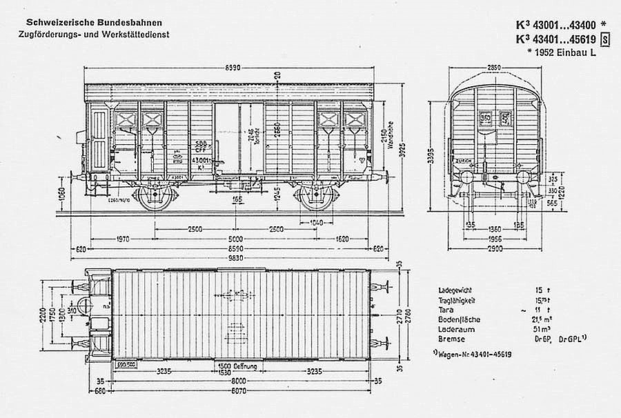 Il carro merci a 2 assi tipo K3 è un classico carro merci coperto delle Ferrovie Federali Svizzere (FFS), costruito a partire dal 1910 e rimasto in servizio fino al 1990. Noto per il suo passo di 5 metri, è esistito in 2 versioni, con o senza la garitta del frenatore. - K3 senza garitta negli Anni ‘60 -