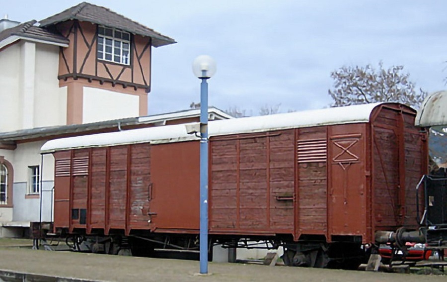 - Carro di colore “bruno-rosso ossido” dell’ultima serie commissionata nel 1953 con cassa in lamiera alle estremità -