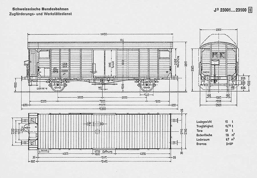 Era lungo 10 m e 10,50 m (con pedana per il frenatore); aveva una capacità di carico di 26 t, e indipendentemente dalle condizioni atmosferiche, poteva trasportare: carbone, sabbia, ghiaia, legname, rottami metallici, barbabietole e molti altri generi.