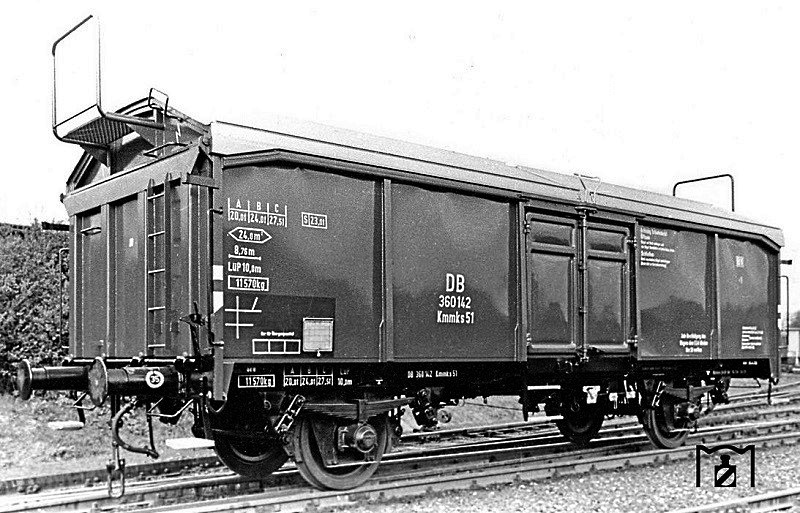 Nel 1960 le DB commissionarono la costruzione di 650 carri Vlmmhs 63 per il trasporto di bestiame. Questi vennero costruiti utilizzando parti di carri bestiame smantellati risalenti all’anteguerra. - Carro Vlmmhs 63 numero 332 280 nel 1962 -
