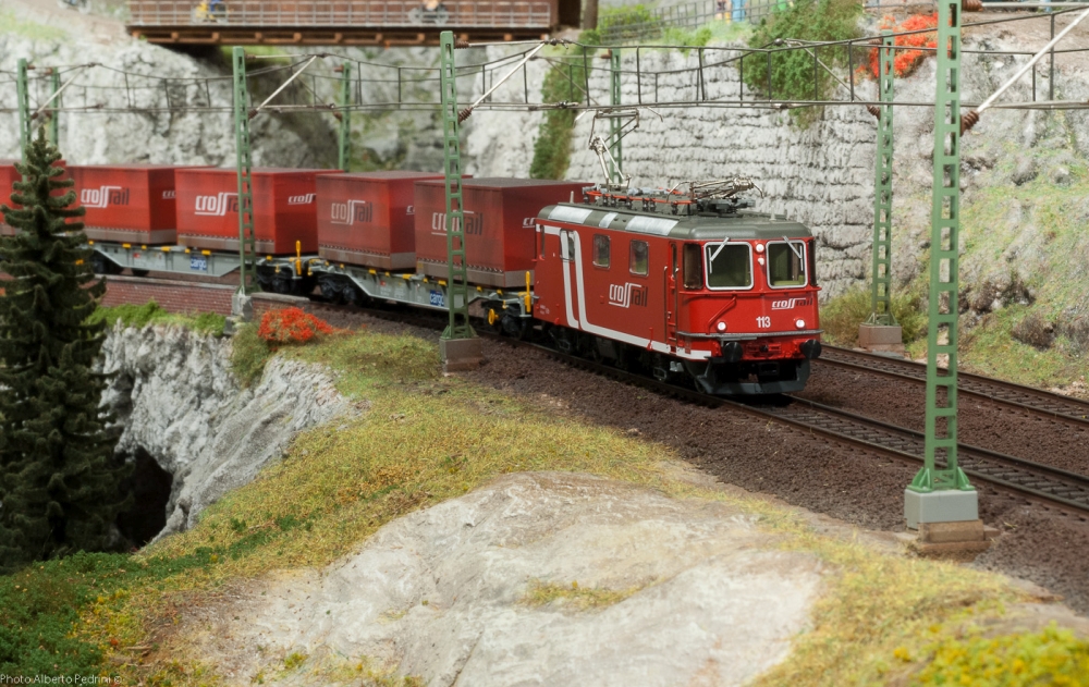 Una mia vecchia foto ritrae la Re 436 113 con un suo convoglio di Container. Stava nel set 37346 del 2010 con una Em 846.