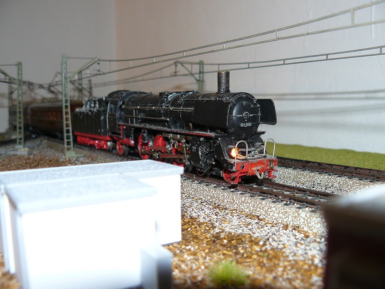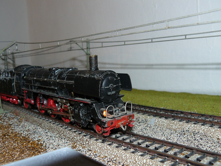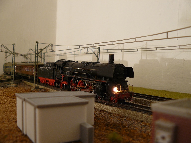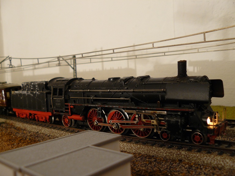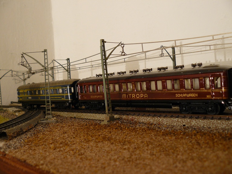 Oggi sono a casa in festa e dato che mi sentivo nostalgico ho tirato fuori una vaporiera di mio padre, l'aveva comprata prima che io nascessi si tratta di una F800.1 e delle due carrozze con cui girava sui binari a 3 rotaie e successivamente sui binari C, l'ho provata su uno dei tre moduli vintage e devo dire che ancora adesso va benissimo, devo cambiare una lampadina (opps),mi sono divertito a fare qualche foto con la loco in "folle" # # # # # questo modello non aveva la predisposizione x il fumo ma e' stata modificata in seguito x ricevere l'inserto fumogeno quando Marklin ha cominciato a dotare le loco del dispositivo, purtroppo come si vede dalle foto non e' stata esente da zinkpest
