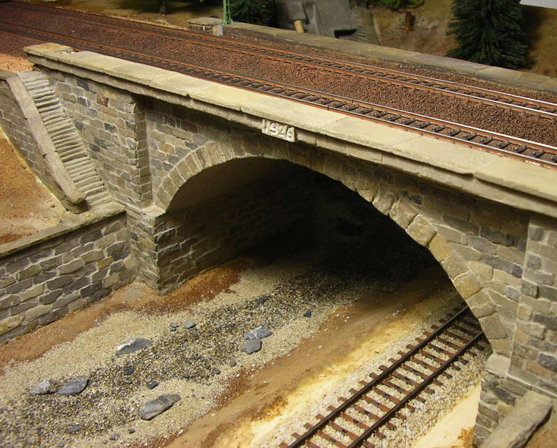 L'idea di realizzare un ponte in pietra naturale risale all'agosto 1986. La prima versione versione del ponte è stata terminata il giorno 11 marzo 1990. Il ponte fu inserito in un plastico che non riuscii a concludere. Il plastico è stato demolito un paio di anni fa ed il ponte è stato recuperato in vista di un suo possibile riutilizzo sul modulo. L'idea di inserire un bacino artificiale con centrale idroelettrica è nata durante un incontro con Alberto, nel mio "bunker" sotterraneo. Per la realizzazione delle opere idrauliche, non ancora completate, ho preso spunto dall'impianto in servizio presso la Cartiera di Ormea (CN).